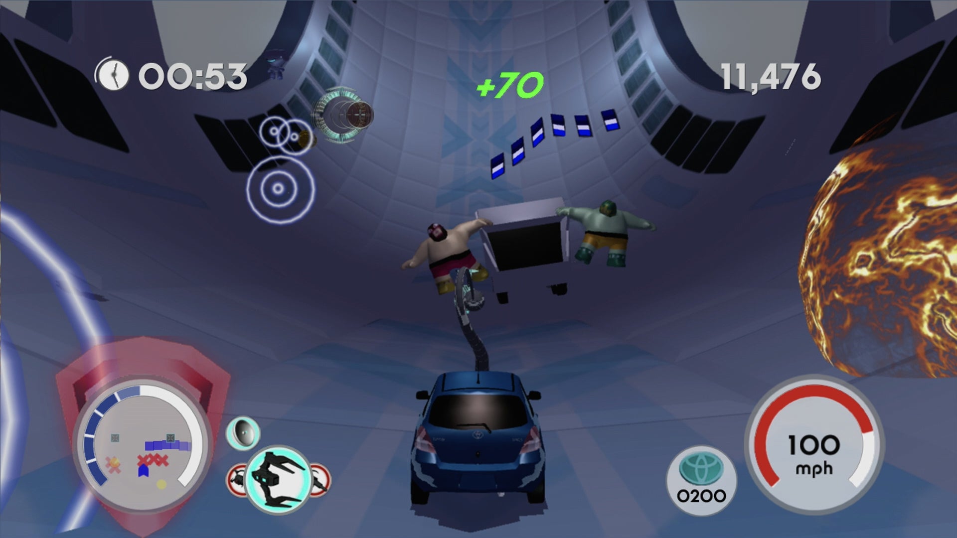 But anyway, that’s enough history, let’s get back to Yaris. For some inexplicable reason, Toyota decided to fund the creation of Yaris, a game that was to be released on the XBLA as a free-to-download promotional tie-in for that line of vehicles. I say inexplicable because I’m not exactly sure who this game was even aimed at. What potential purchaser of a car would be persuaded to buy a Yaris, over all others, by a free downloadable video game? Let alone one that didn’t even demonstrate what was good about the Yaris to begin with like, say, its excellent reliability or superb fuel economy.